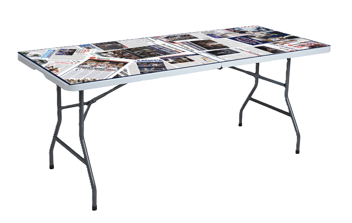 Turn your tailgate into a fan zone with our premium 6-foot table covers, designed with bold newspaper collage artwork featuring your favorite college team. Whether you’re flipping burgers or playing flip cup, this durable, eye-catching cover instantly transforms any plain table into the centerpiece of your pregame party. Made to fit standard folding tables, it's weather-resistant, easy to clean, and built for beer spills, bean dips, and big wins.